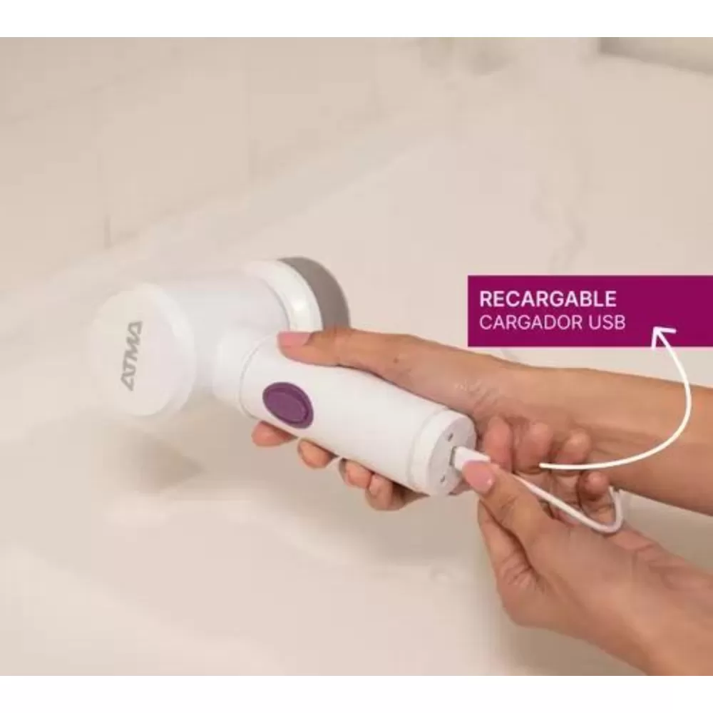 El Cepillo Eléctrico Limpia Prendas y Zapatillas 5 en 1 Recargable USB Atma compacto y portátil, es tu aliado para mantener tus prendas impecables.