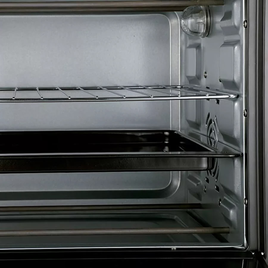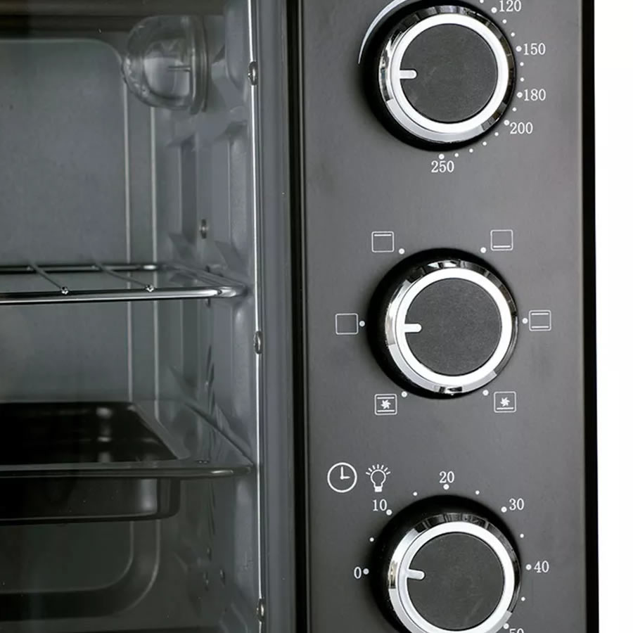 • Horno Eléctrico por Convección Smartlife. • Modelo: SL-TO0040 • Diseño • El Smartlife SL-TO0040 es un horno eléctrico con un moderno diseño en color negro. • Incluye puerta con amplio visor y luz interior para controlar el estado de la comida. • Sistema de apertura vertical. • Perillas de control ubicadas en el frente del equipo • Posee 3 funciones de cocción. • Posee regulador de temperatura de 100° a 250°C y de temporizador hasta 60 minutos. • 1600W de Potencia. • Spiedo: No • Timer: Sí • Capacidad (lts): 40 lts • Estante de parrilla regulable en altura. • Incluye: rejilla, bandeja de alimentos, manipulador de bandeja y bandeja junta migas. • Dimensiones: • Ancho: 54 Cm. • Altura: 34 Cm. • Profundidad: 32,5 Cm. • Profundidad: 38 Cm (incluye palanca) • Embalaje: • Ancho: 58 Cm. • Altura: 39 Cm. • Profundidad: 43 Cm. • 50-60Hz - 220V.